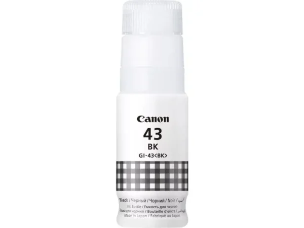 Encre originale Canon GI-43 Noir pour des noirs profonds et des contrastes saisissants. Le pilier de toute impression de qualité : textes nets, photos contrastées et graphiques percutants. Enrichie par la technologie ChromaLife100 pour des tirages durables jusqu’à 100 ans. Recharge facile grâce au design no-squeeze avec identification mécanique colorée.
