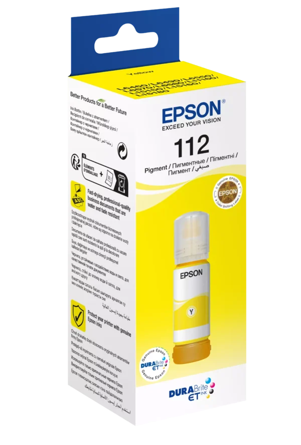 La bouteille d’encre jaune pigmentée Epson 112 complète la gamme couleur pour des impressions professionnelles éclatantes. Cette encre à séchage rapide résiste au maculage et aux surligneurs, garantissant des couleurs vives et durables. Idéale pour l’impression recto-verso, elle offre une fiabilité optimale pour tous vos documents couleur avec un jaune lumineux et éclatant.