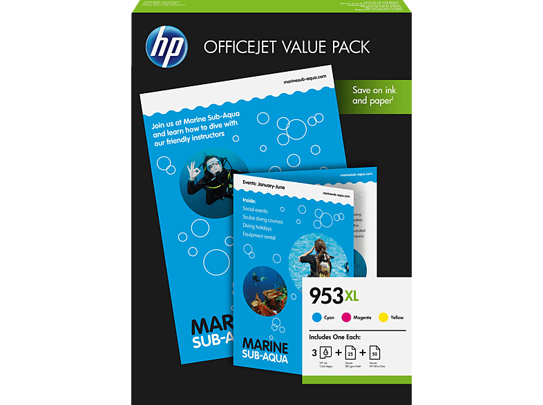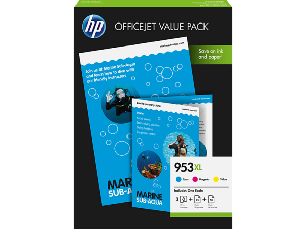 ■ HP 953XL Office Value Pack – pack de 3 – à rendement élevé – couleur (cyan, magenta, jaune) – jeu de papier / cartouche d’encre