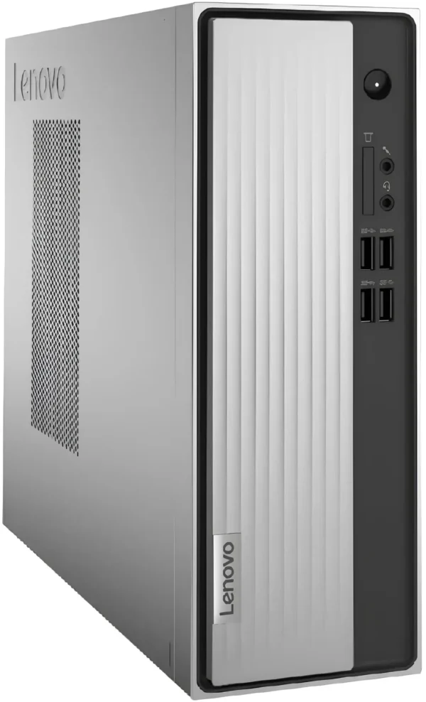 Le Lenovo IdeaCentre 3 07ADA05 est un PC de bureau compact au format SFF (Small Form Factor) de seulement 7,4 litres, conçu pour s’intégrer partout — bureau, accueil, salle de classe ou comptoir. Équipé du processeur AMD 3020e dual-core (1,2 GHz / boost 2,6 GHz), de 4 Go de RAM DDR4 et d’un SSD NVMe de 128 Go, il assure une utilisation fluide en bureautique, navigation web et multimédia léger. Son châssis gris minéral au design épuré intègre une connectique généreuse : 4× USB à l’avant (dont 2× USB 3.2 Gen 1) + 4× USB 2.0 à l’arrière, HDMI 1.4 + VGA pour double écran, lecteur de cartes 7-en-1 et Wi-Fi ac + Bluetooth 5.0 pour la connectivité sans fil. Livré avec Windows 10 Home, clavier et souris USB. Garantie 2 ans.