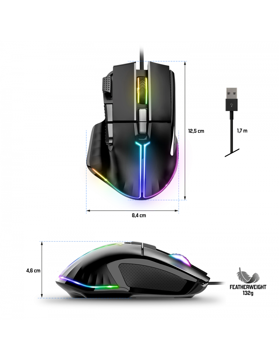 Réf. 5-PM5RGB — 12 800 DPI • 8 boutons programmables • 13 effets RGB • Filaire