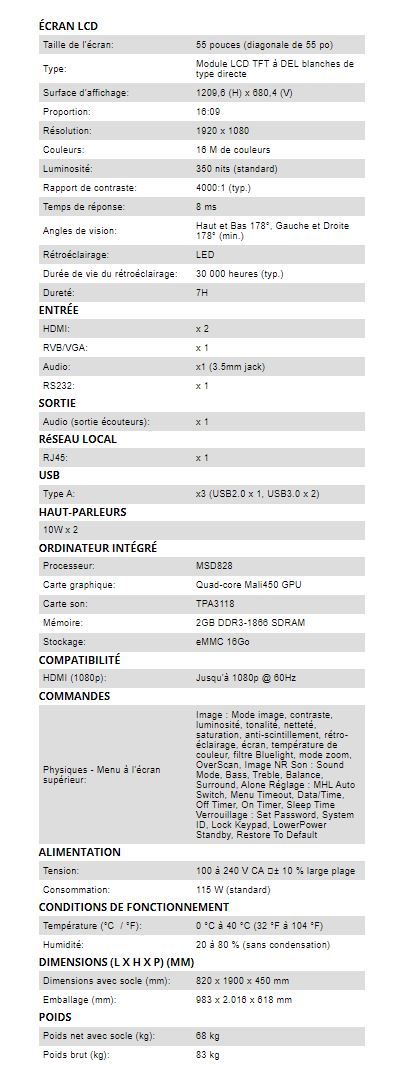 TOTEM d ‘affichage ViewSonic EP5520 55″ All-in-One