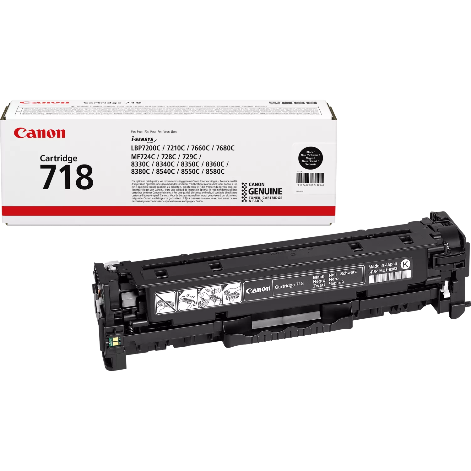 Canon 718BK (2662B002) : toner noir Tout-en-un avec rendement de 3 400 pages selon ISO 19798. Tirages monochromes nets et sans traces pour documents professionnels. Cartouche authentique Canon garantissant résultats détaillés et longue durée de vie. Compatible 15 imprimantes i-SENSYS incluant MF729Cx, MF728Cdw, MF724Cdw, LBP7200Cdn, LBP7210Cdn. Norme RoHS conforme. Programme recyclage gratuit pour planète !