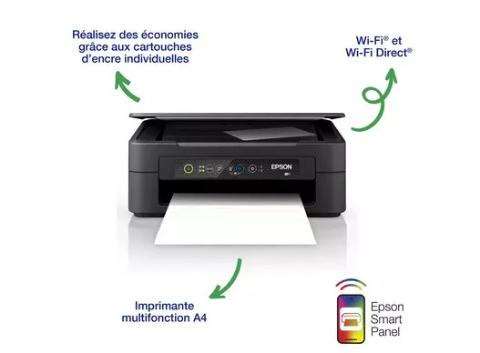Vous recherchez un multifonction qui soit esthétique, simple d’utilisation et qui vous permette de faire des économies ? Optez pour le XP-2200. Ce modèle est également compact et produit des impressions claires et éclatantes. L’impression avec des appareils à distance est facile grâce au Wi-Fi, au Wi-Fi Direct et à une gamme d’applications Epson compatibles