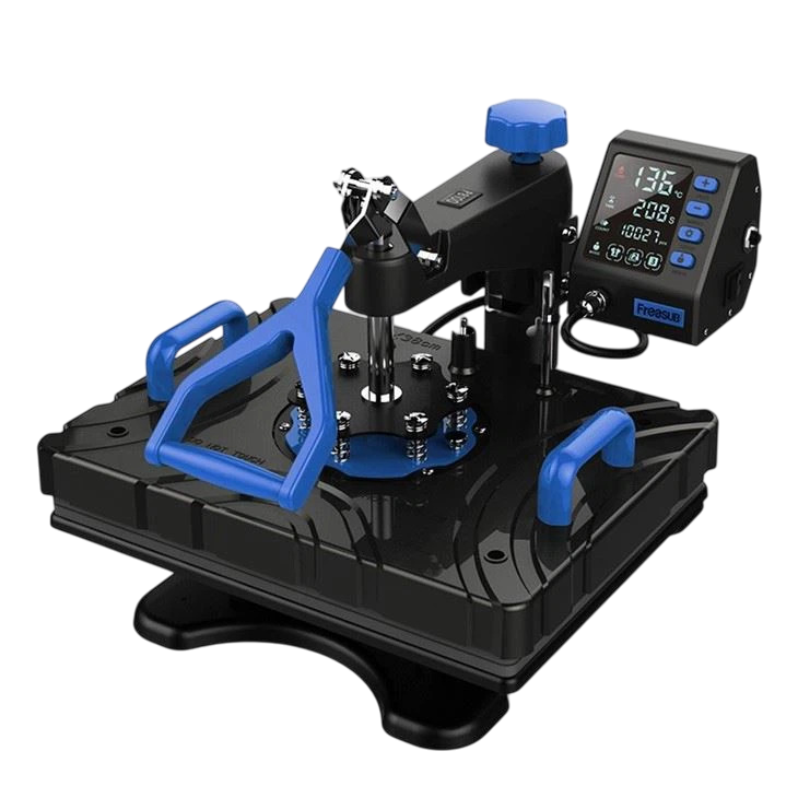 La presse à chaud multifonctionnelle FREESUB 4 en 1 est une machine polyvalente permettant de sublimer des objets de différentes formes. Grâce aux unités de repassage interchangeables, personnalisez des t-shirts, mugs, casquettes et assiettes avec une seule machine. Plus besoin d’acheter plusieurs équipements – gagnez en budget et en espace !