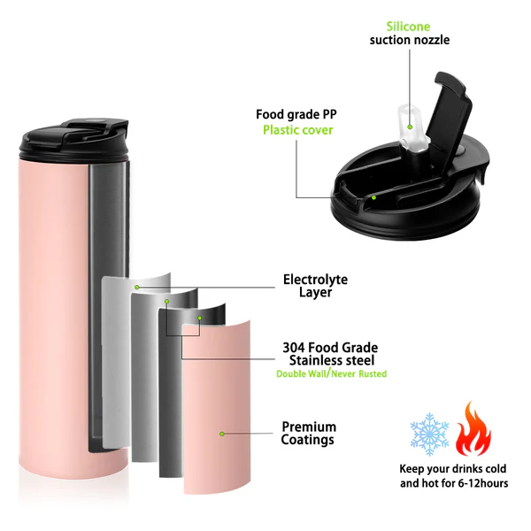 Présentation de notre gobelet en acier inoxydable, le compagnon idéal pour garder vos boissons chaudes ou froides lors de vos déplacements. Ce gobelet vierge à sublimation présente d’excellentes performances thermos, avec la capacité de garder vos boissons chaudes jusqu’à 6 heures et froides jusqu’à 10 heures.